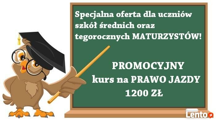 Wielkimi krokami zbliża się koniec roku szkolnego !Z tej okazji Ośrodek Szkolenia Kierowców - Tomasz Żmijewski pierwszy raz w tym roku organizuje dla uczniów szkół średnich *PROMOCYJNY* kurs na PRAWO JAZDY !
